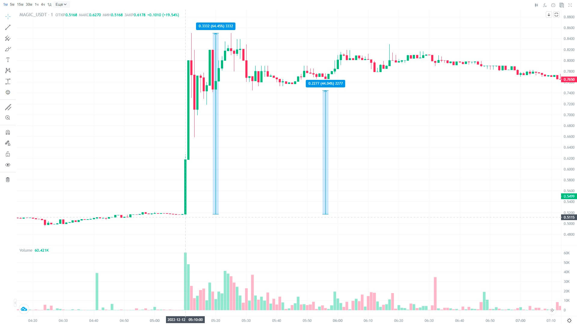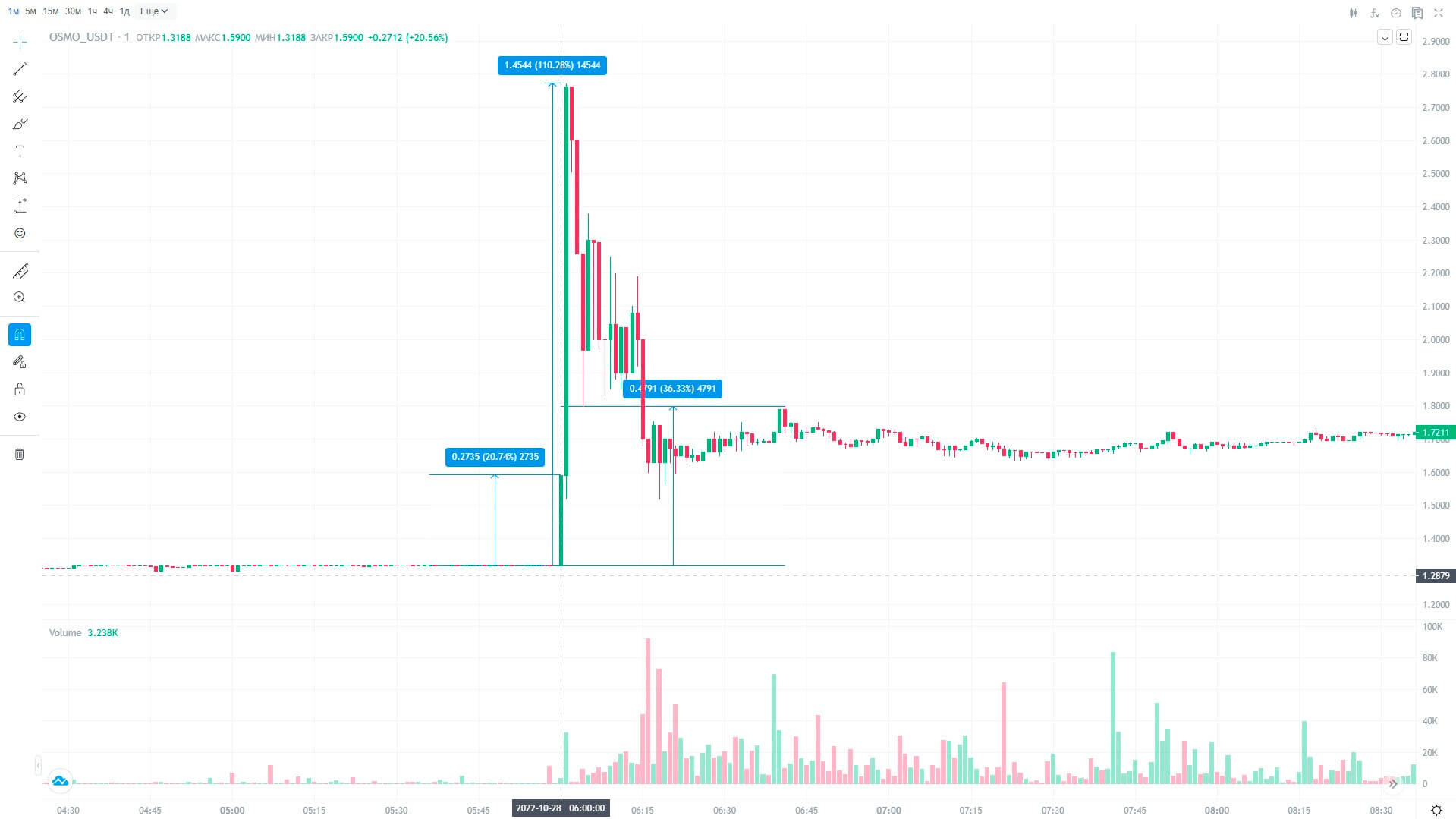 Вот, что происходит с монетой в момент анонса ее листинга на другой крупной бирже. Впечатляет?