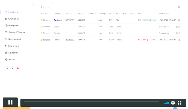 По нашим наблюдениям, после анонса цена однозначно вырастает. Если вам будет не достаточно этой дельты, вы в любой момент можете стопнуть бота и продать все монеты в рынок. Также у вас есть возможность установить SL.